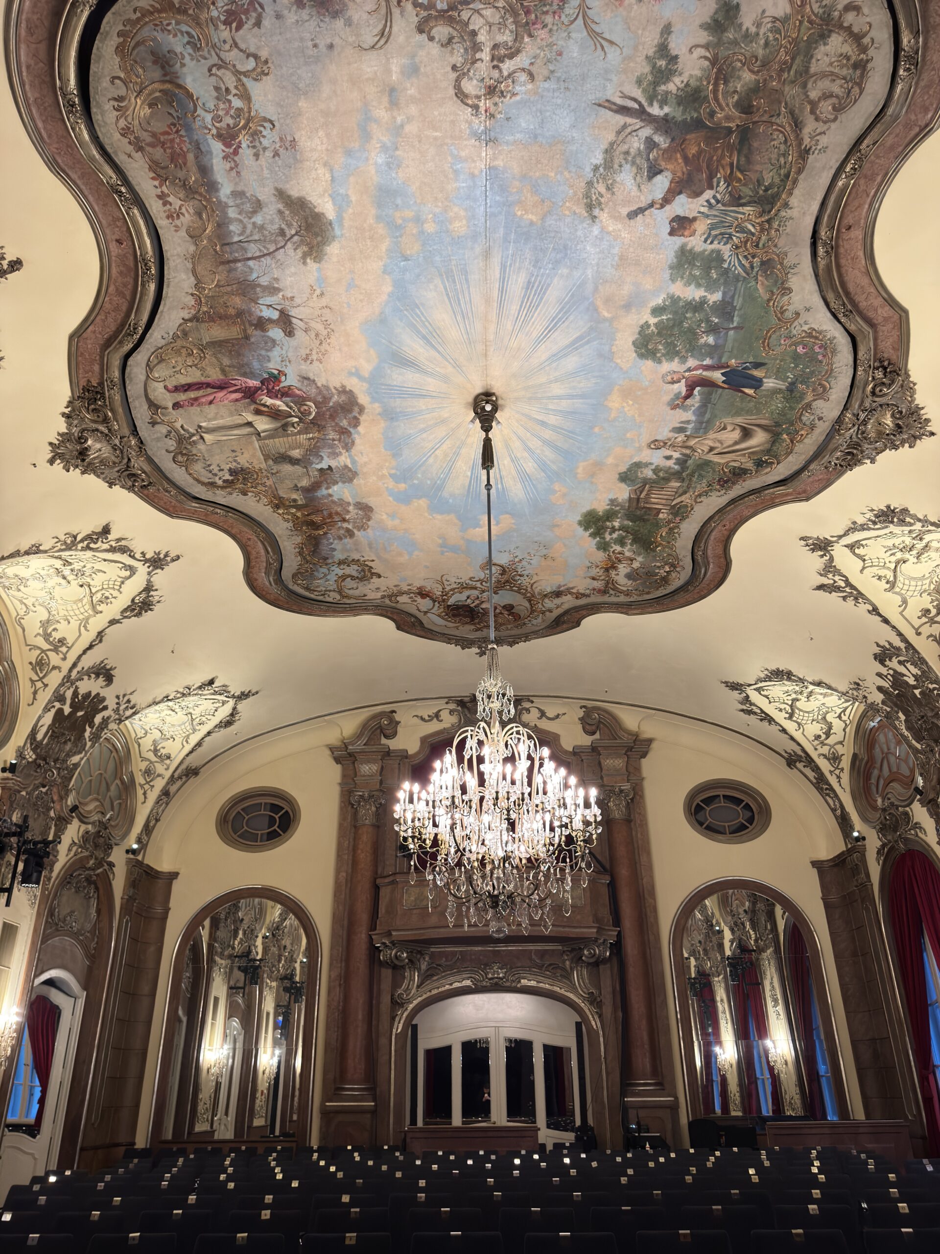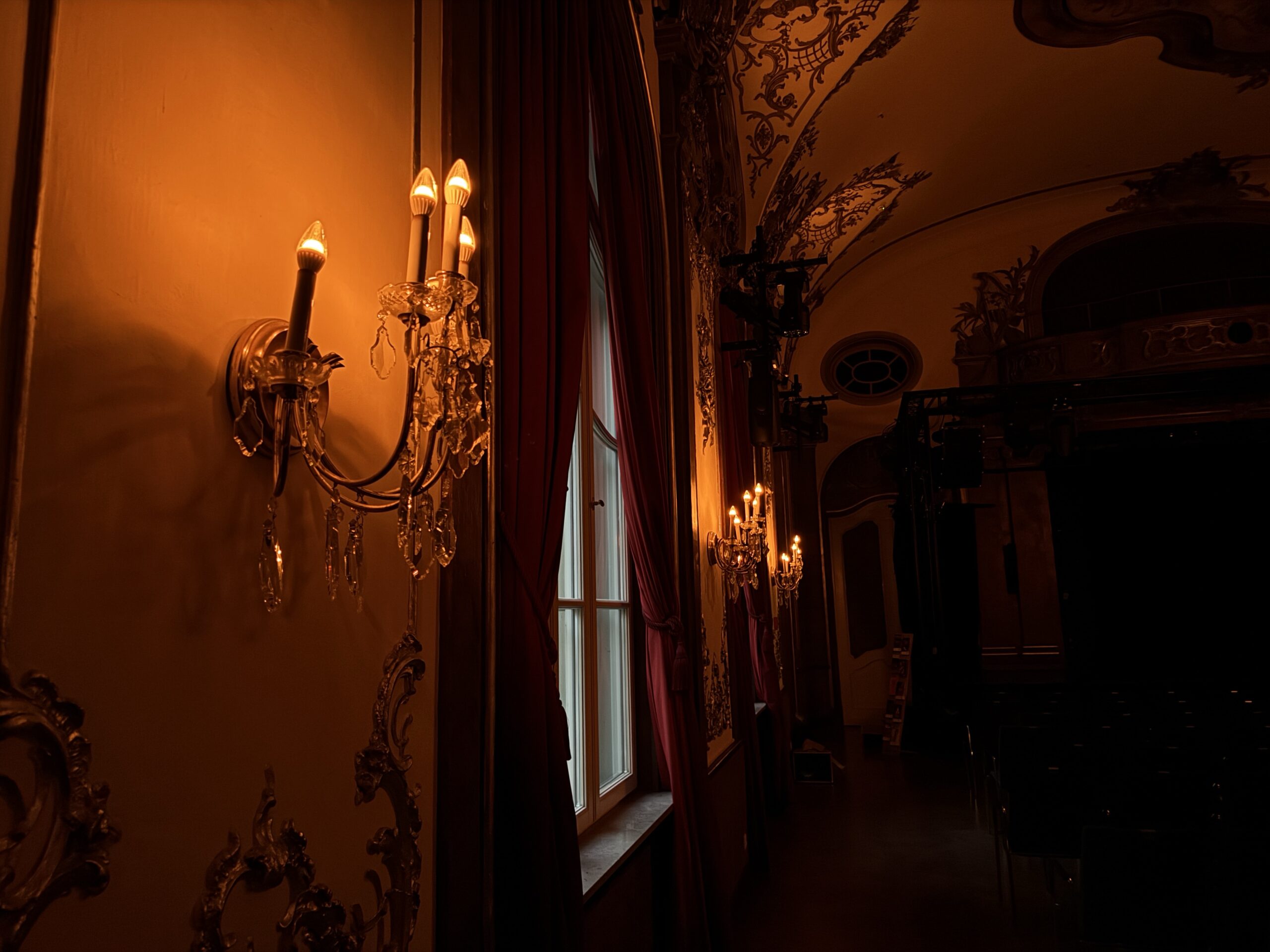 The Silver Hall is the last original room remaining, having remained in use since the theatre first opened. Its ornate chandeliers, decorative wall sconces and arched window features define the architectural character of the space, with warm halogen lighting forming an essential part of its atmosphere.